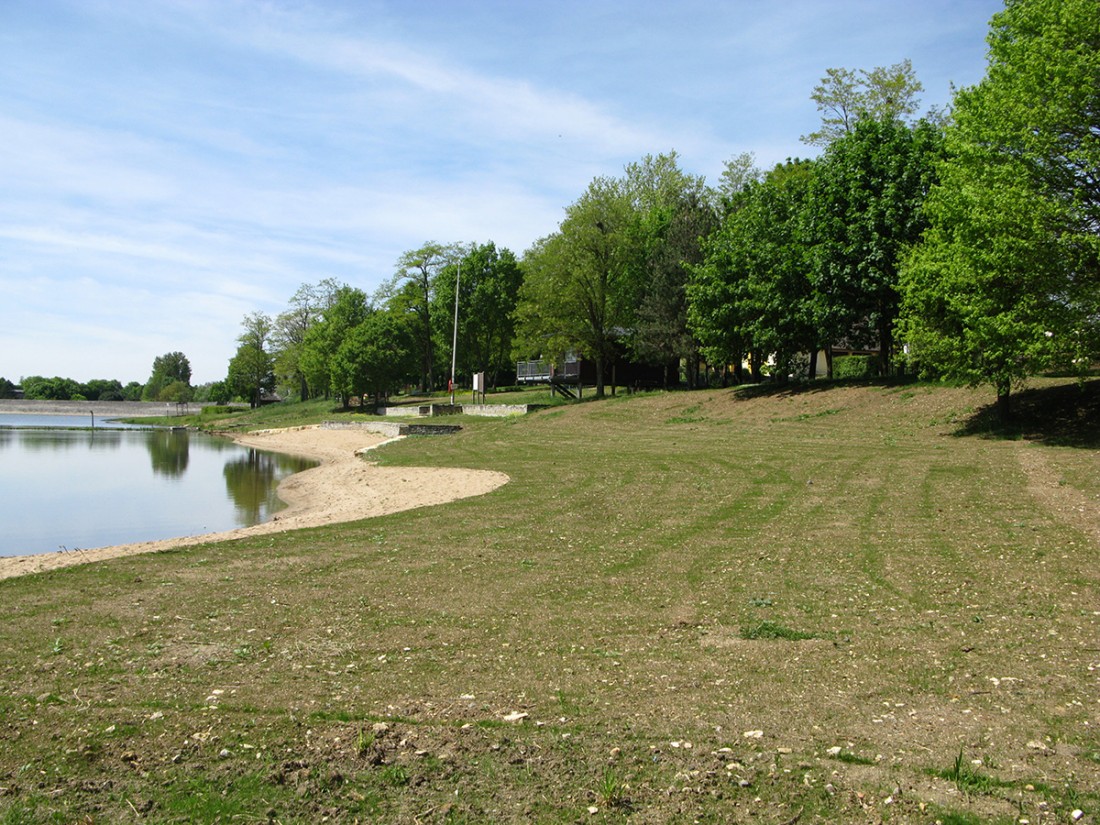 Une aire de jeux rappelle les principes de création d’un lac de barrage comme celui de Goule. Des saules sont plantés un peu partout et certains sont tressés en hutte et autres tunnels… En pariant sur la capacité ludique des propositions mises en tension avec le site et l’augmentation des plages engazonnées au profit d’un sable qui fuit au moindre pluies le projet fait confiance au paysage pour susciter l’intérêt et conserver l’engouement des visiteurs.