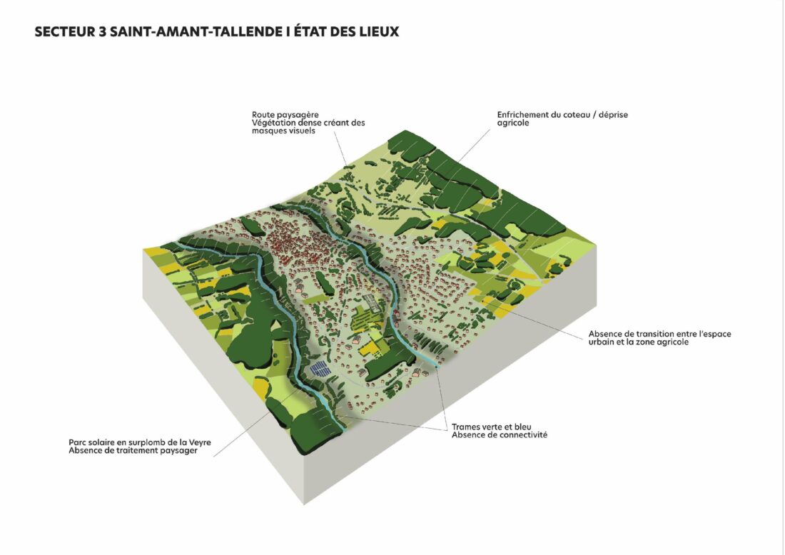 ° Vers un paysage identitaire > définition des unité paysagères, les dynamiques en cours (urbanisation des coteaux, développement économique en entrée de ville, déploiement des infrastructures énergétiques) et les sensibilités.
